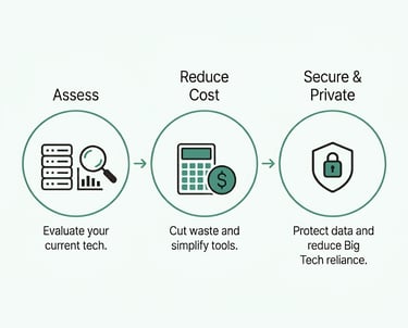 Evaluate your existing technology landscape and identify areas for reduced cost and increased privacy.